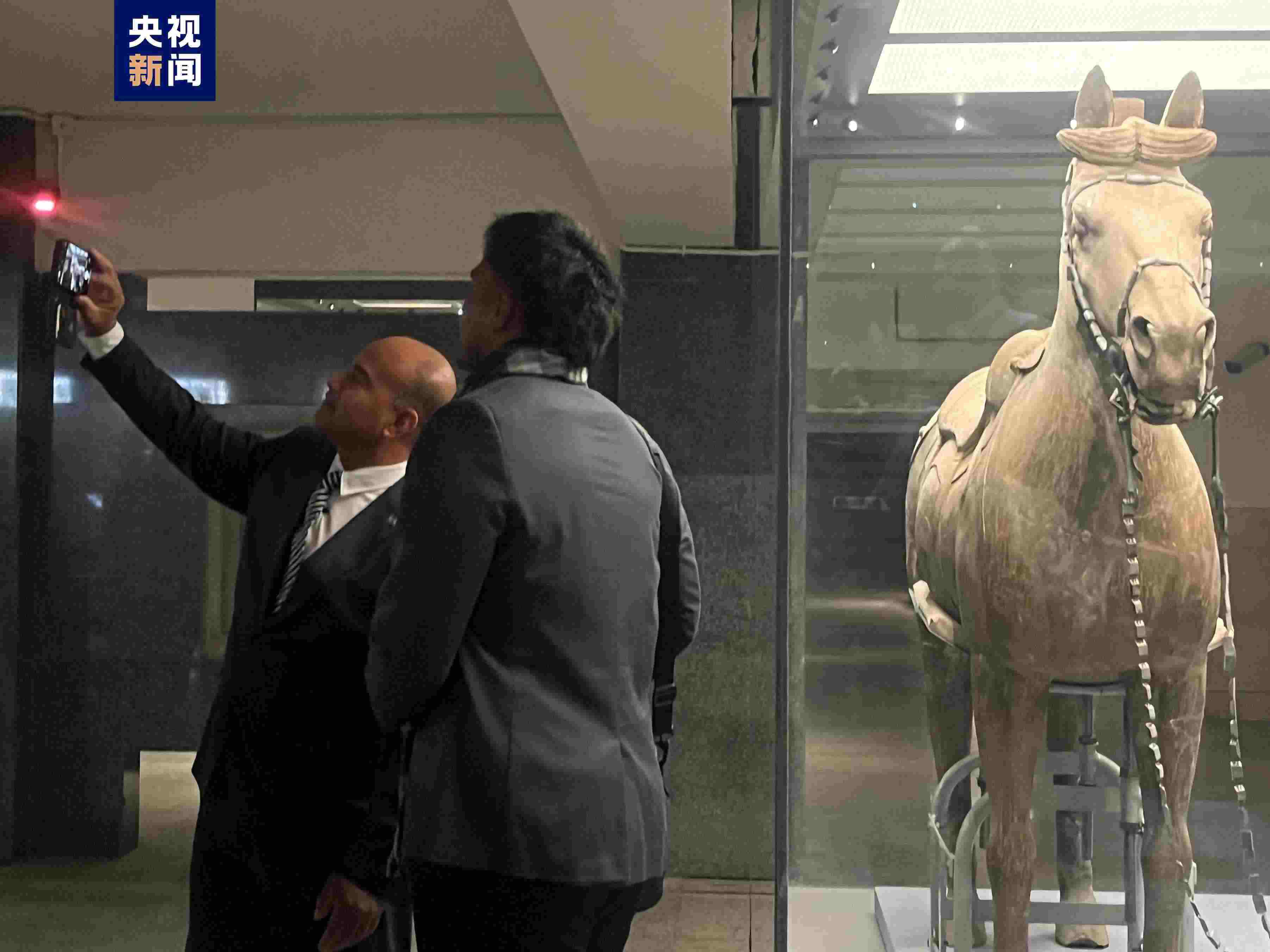 瑙魯總統(tǒng)阿迪昂今天(27日)在陜西西安繼續(xù)訪華之旅。在秦始皇兵馬俑博物館,阿迪昂總統(tǒng)先后參觀了一號(hào)坑、三號(hào)坑和二號(hào)坑,了解秦兵馬俑的歷史。參訪過程中,阿迪昂總統(tǒng)不時(shí)拿出手機(jī)自拍,記錄這段與古老中國(guó)“相遇”的難忘之旅。在接受總臺(tái)央視記者采訪時(shí),阿迪昂總統(tǒng)表示,自己一直非常期待能夠來(lái)到這里,希望通過此訪增進(jìn)對(duì)中國(guó)的了解,也相信瑙中兩國(guó)加強(qiáng)合作,將助力瑙魯實(shí)現(xiàn)進(jìn)一步發(fā)展與繁榮。