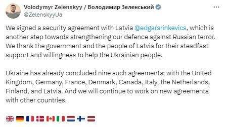同日早些時(shí)候,澤連斯基在另一條貼文中宣布,烏克蘭已經(jīng)與英國(guó)、德國(guó)、法國(guó)、丹麥、加拿大、意大利、荷蘭、芬蘭和拉脫維亞簽署了雙邊安全協(xié)議。他還稱(chēng),“烏克蘭將繼續(xù)努力與其他國(guó)家達(dá)成新協(xié)議。”