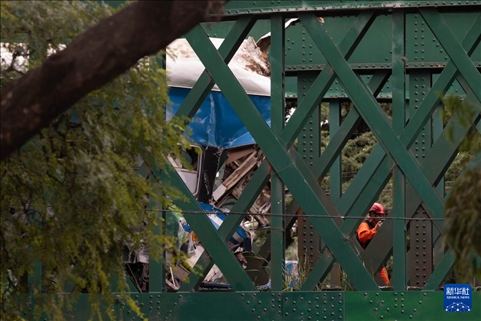 5月10日,救援人員在阿根廷首都布宜諾斯艾利斯火車相撞事故現(xiàn)場(chǎng)工作(無人機(jī)照片)。新華社發(fā)(馬丁·薩巴拉攝)