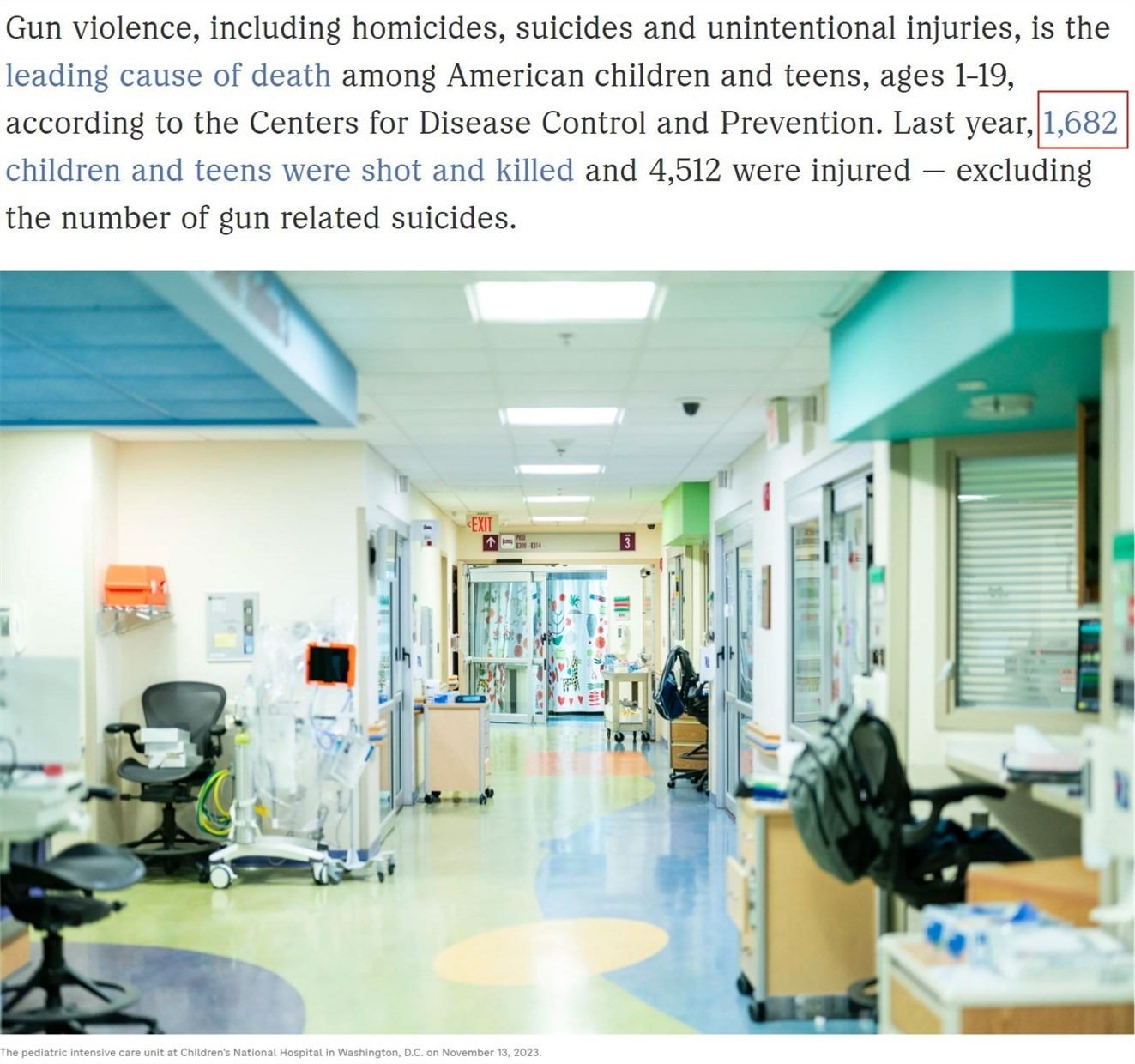 美國(guó)疾控中心的數(shù)據(jù)顯示,2023年全年,美國(guó)兒童和青少年中共有至少1682人死于槍擊,另有4512人受傷。這還不包括與槍支相關(guān)的自殺人數(shù)。