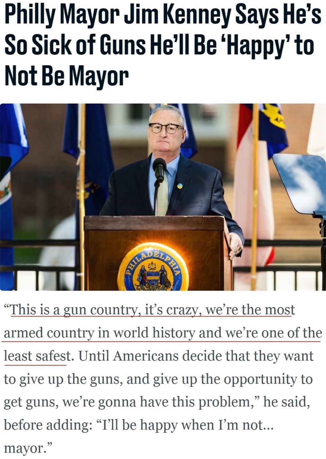 對(duì)于如此夸張的數(shù)據(jù),美國(guó)費(fèi)城前任市長(zhǎng)吉姆·肯尼曾無奈地感嘆,美國(guó)是槍支王國(guó)。