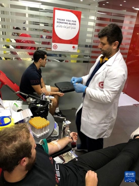 9月17日,在黎巴嫩貝魯特,人們?yōu)閭骱粼O備爆炸事件傷者獻血。新華社發(fā)(比拉爾·賈維希攝)