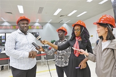 中加記者在深能安所固電力(加納)有限公司中控室采訪(fǎng)加方工程師。本報(bào)記者 孟祥麟攝