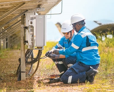馬來西亞吉打州南部的瓜拉基蒂光伏電站,工人檢查設(shè)備。這座電站由中國廣核能源國際控股有限公司所屬埃德拉電力控股有限公司運(yùn)營,中國能源建設(shè)集團(tuán)天津電力建設(shè)有限公司承建,占地260英畝,裝機(jī)50兆瓦,2019年開始商業(yè)運(yùn)行。張紋綜攝(新華社發(fā))