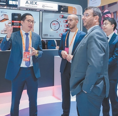 與中國(guó)金融科技公司共同助力中東北非地區(qū)數(shù)字金融基礎(chǔ)設(shè)施建設(shè),與中國(guó)綜合物流服務(wù)企業(yè)攜手提升沙特及中東北非地區(qū)快遞物流運(yùn)輸水平……走進(jìn)國(guó)家會(huì)議中心阿吉蘭兄弟控股集團(tuán)140平方米的展臺(tái),映入眼簾的是該集團(tuán)與數(shù)十家中國(guó)龍頭企業(yè)合作的重要成果。