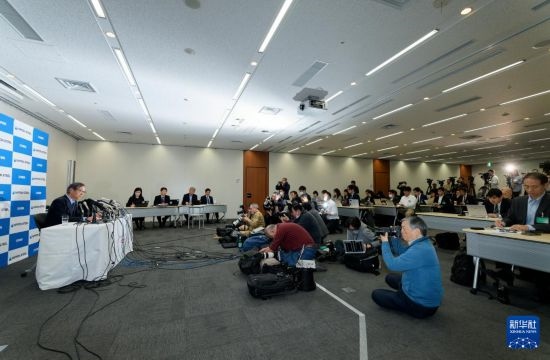 1月7日,在日本東京,日本制鐵公司會(huì)長(zhǎng)兼首席執(zhí)行官橋本英二出席記者會(huì)。新華社記者 張笑宇 攝