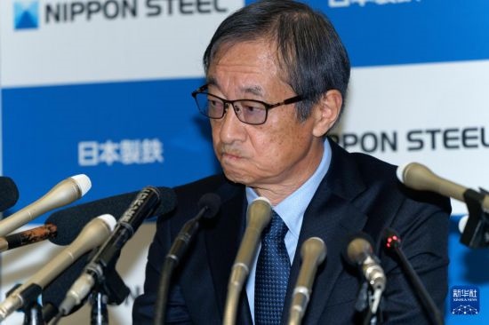 1月7日,在日本東京,日本制鐵公司會(huì)長(zhǎng)兼首席執(zhí)行官橋本英二在記者會(huì)上發(fā)言。新華社記者 張笑宇 攝