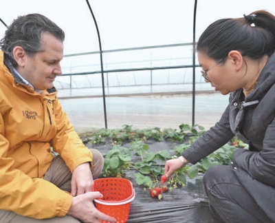 亞歷克斯探訪位于重慶渝北區(qū)的一家草莓園。