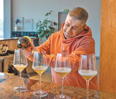 “除了葡萄酒外,我們還不斷拓展釀酒種類。這兩款酒是由我們員工自家種植的大米和蘋果釀制的?!奔贸鰞善烤谱院赖亟榻B道,“它們在市場上很受歡迎,農(nóng)產(chǎn)品附加值提高了,員工們的收入更多了,真正實(shí)現(xiàn)了產(chǎn)業(yè)與生活的緊密結(jié)合?!?/p>