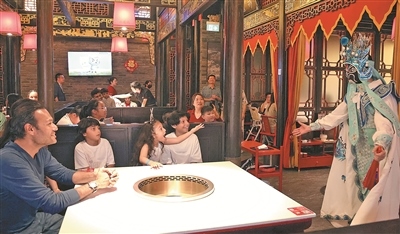 潘國(guó)余說(shuō),迪拜小龍坎火鍋店的位置在華人聚居區(qū),但現(xiàn)在40%的客人來(lái)自世界各地。這說(shuō)明只要把握好品質(zhì),中國(guó)餐飲品牌“走出去”有著巨大空間?!拔覀儼l(fā)現(xiàn),很多國(guó)際客人來(lái)這里,一是因?yàn)槌曰疱伳茏约赫瓶乜谖杜c火候,有儀式感,二是能更多體驗(yàn)中國(guó)文化?!睘榇?,小龍坎火鍋店特意安排了川劇變臉、甩面秀、古箏彈奏等表演(見(jiàn)圖③,本報(bào)記者管克江攝),還提供傳統(tǒng)服飾供客人試穿、拍照?!盎疱伒甑难b修是古色古香的川西風(fēng)格,包廂名字也具有蜀地文化特征,如青梅煮酒、三顧茅廬、桃園結(jié)義等。每當(dāng)有外國(guó)朋友問(wèn)起包廂名的含義,我們都會(huì)仔細(xì)解釋其歷史典故,做好美食的同時(shí)講好中國(guó)故事。”