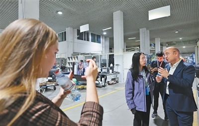 在物流分揀中心,聯(lián)合采訪團隊正在進行采訪。