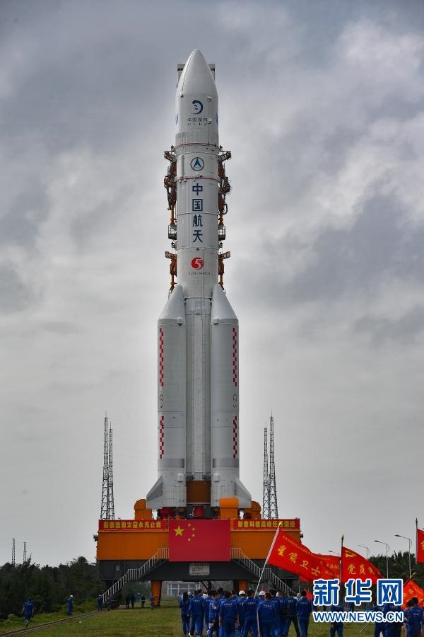 這是11月17日在中國文昌航天發(fā)射場拍攝的長征五號(hào)遙五運(yùn)載火箭。新華社記者郭程攝