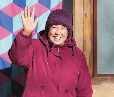 駱駝灣村70多歲的顧寶青大娘:“來村里旅游的人越來越多,我們的日子也越來越紅火!”