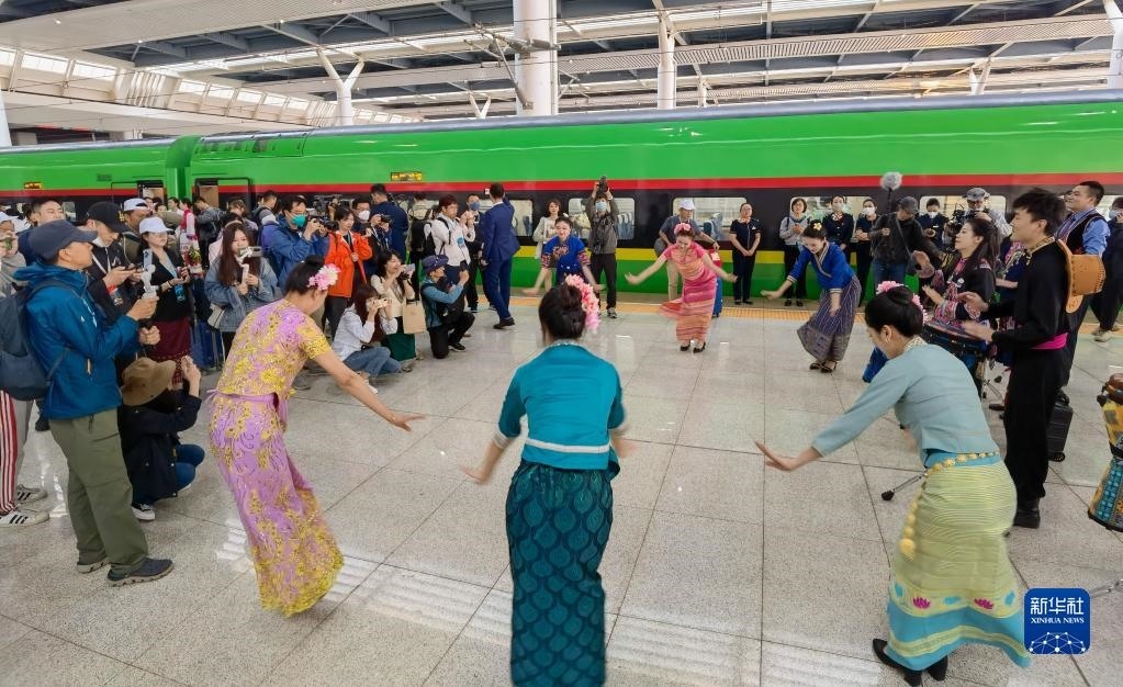 當(dāng)日,中老鐵路開行國際旅客列車,昆明至萬象間可實現(xiàn)乘火車當(dāng)日通達(dá)。新華社記者 邢廣利 攝