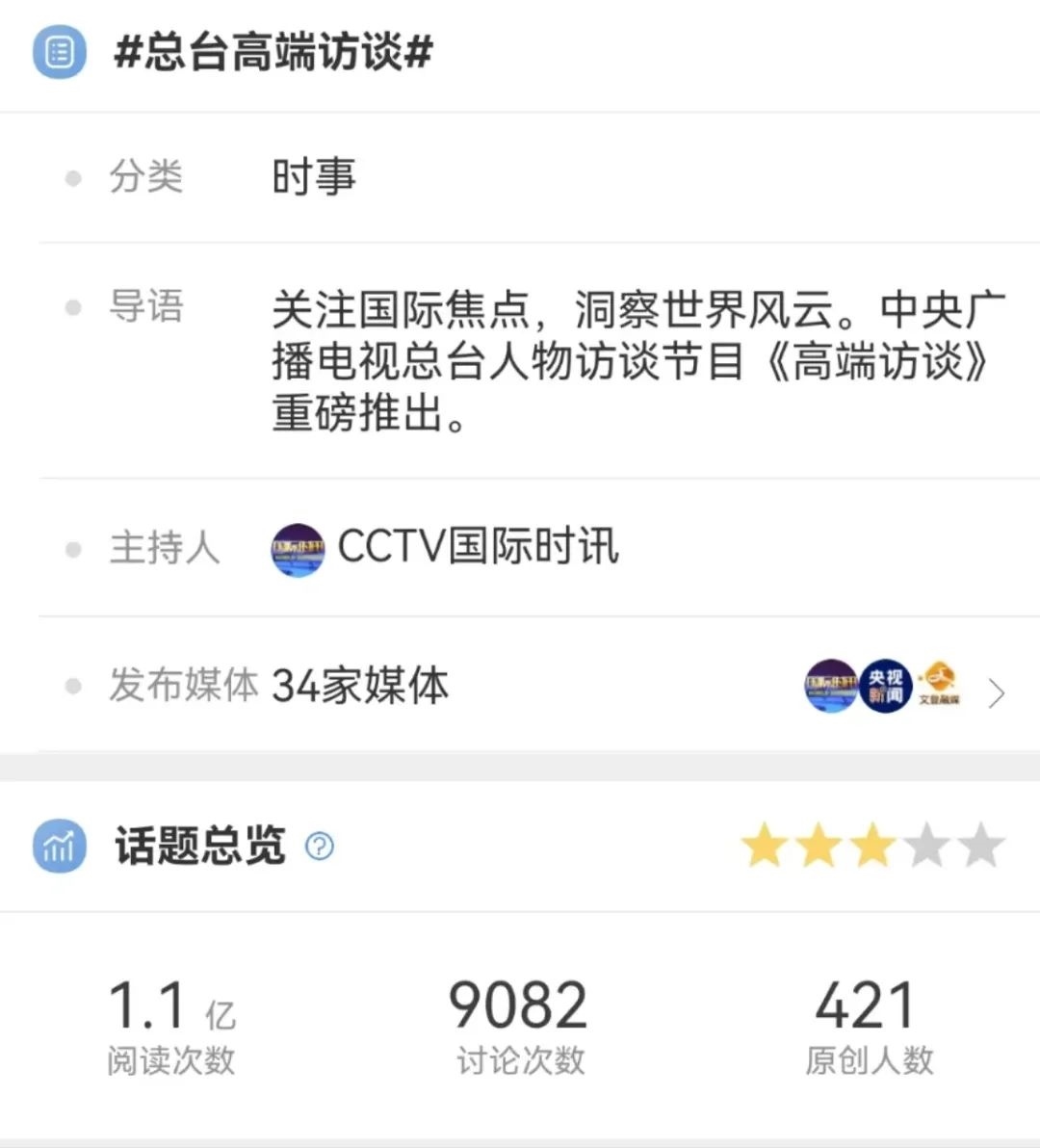 在充分調(diào)研的基礎(chǔ)上,《高端訪談》的采訪敢于碰真問題、硬問題,緊扣當下熱點,以觀點鮮明、針對性強、易于傳播的重磅采訪報道主動設(shè)置議題,奮力提升中國聲音在國際輿論場中的話語權(quán)。