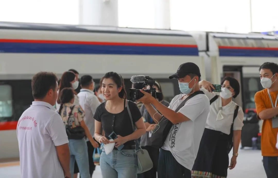 比如,專訪老撾國家主席通倫的節(jié)目中,主持人鄒韻在中老鐵路“瀾滄號”動車上采訪當?shù)芈每?,車窗外鐵路沿線風光萬千,總臺出品的歌曲《坐著火車去老撾》活潑輕盈,各國乘客用最真實的出行體驗,生動展現(xiàn)了跨越山河、聯(lián)結(jié)友誼的中老鐵路,是共建“一帶一路”取得的實打?qū)嵉某删汀?/p>