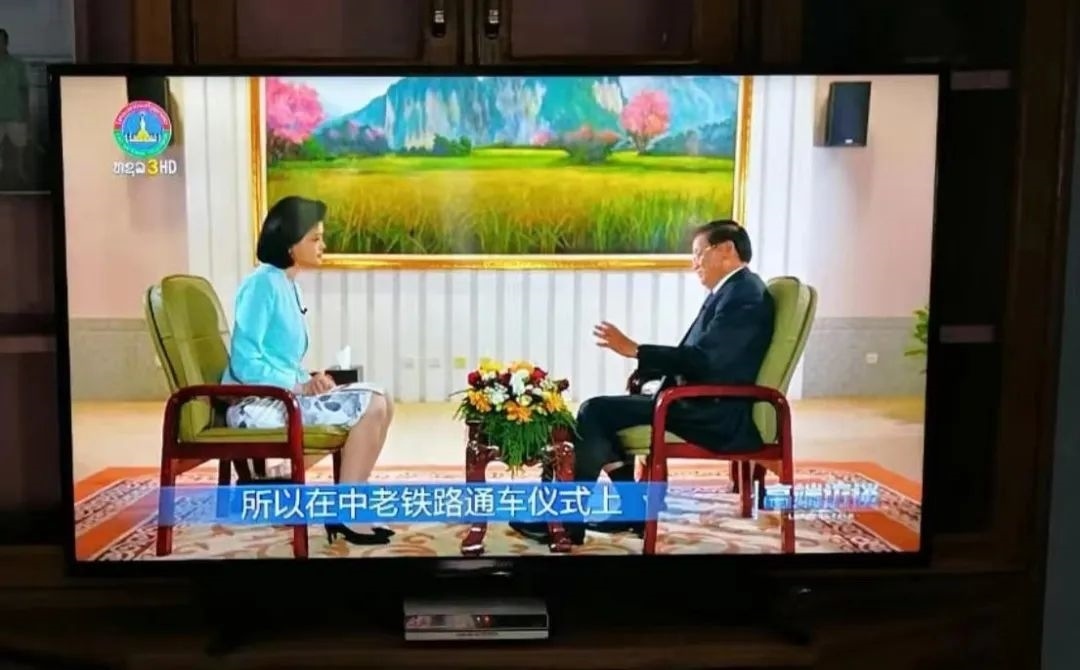 △專訪老撾國家主席通倫的節(jié)目在老撾國家電視臺播出