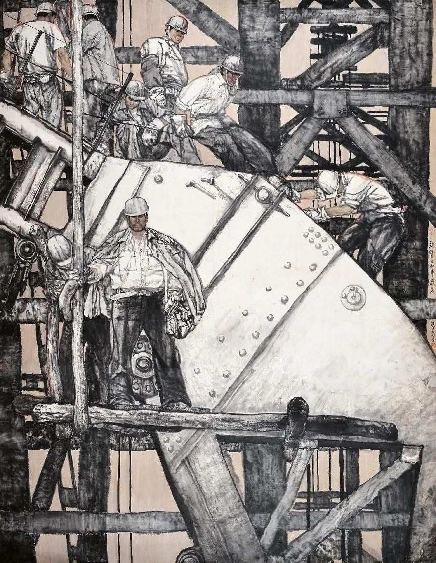 對傳統(tǒng)現(xiàn)實主義的繼承和拓展。作為一位具備卓越造型能力的人物畫家,蔡超始終堅持深入現(xiàn)實生活,他以敏銳的觀察力和理解力,以豐富的人生閱歷不斷從生活中提煉創(chuàng)作母題,發(fā)掘常人所不易察覺的藝術趣味。因此,蔡超筆下的人物總是葆有鮮活的生命和氣息,他們不是空洞的“人民”,而是牢固與地氣相接,與時代共呼吸的真正的“人民”,他創(chuàng)造了嶄新的屬于贛鄱大地的人民形象,這是蔡超對于江西現(xiàn)實主義繪畫創(chuàng)作最重要的貢獻。同時,蔡超不僅繼承了徐悲鴻、蔣兆和以來中國人物畫創(chuàng)作的優(yōu)良傳統(tǒng),更以“筆墨當隨時代”的勇氣和魄力,在工業(yè)題材領域樹立了令人耳目一新的繪畫范式——這是一個前無古人的偉大突破。