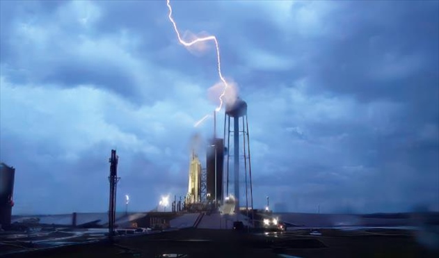 ·美SpaceX火箭發(fā)射推遲:發(fā)射臺(tái)遭多道閃電擊中,畫面曝光。