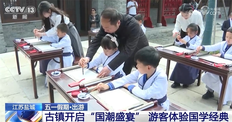 “五一”假期期間,江蘇鹽城鹽南高新區(qū)伍佑珠溪古鎮(zhèn)開啟了一場別開生面的“國潮盛宴”。大家追隨先賢的歷史足跡,在開筆禮、冠禮、六藝國學講堂等活動中體驗穿越千年的國學經典。