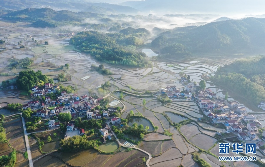 航拍安徽省宣城市旌德縣興隆鎮(zhèn)三山村梯田美景。新華網(wǎng)發(fā)(江建興 攝)