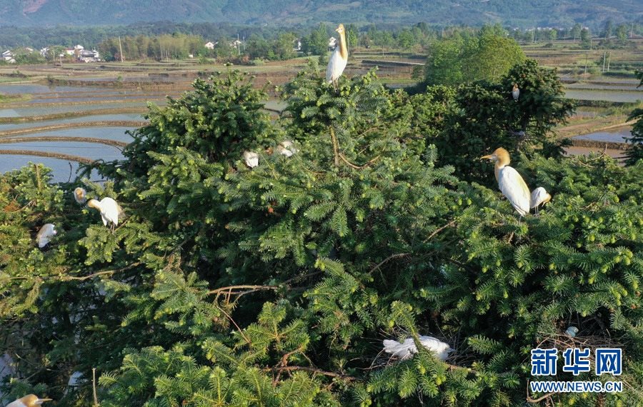 航拍安徽省宣城市旌德縣興隆鎮(zhèn)三山村,良好的生態(tài)環(huán)境吸引眾多鳥(niǎo)類(lèi)在這里安家落戶(hù)。新華網(wǎng)發(fā)(江建興 攝)