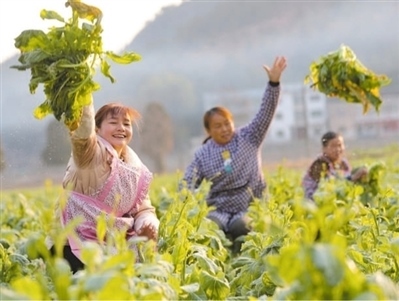 貴州省黔東南苗族侗族自治州岑鞏縣關(guān)莊村芥菜種植基地,村民們?cè)诓墒战娌?。胡攀學(xué)攝(人民視覺(jué))