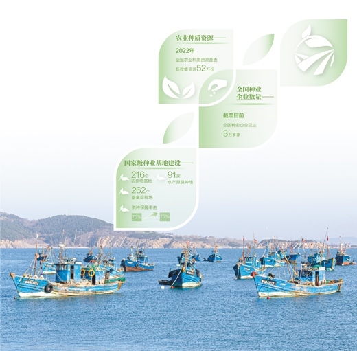 如今,我國(guó)國(guó)家級(jí)種業(yè)基地加快布局,由216個(gè)農(nóng)作物基地、262個(gè)畜禽育種場(chǎng)、91家水產(chǎn)原良種場(chǎng)組成的“國(guó)家隊(duì)”,供種保障能力由70%提高到75%。節(jié)水小麥、優(yōu)質(zhì)水稻品種選育取得新突破,農(nóng)作物良種覆蓋率達(dá)96%以上,保障了中國(guó)糧主要用中國(guó)種。
