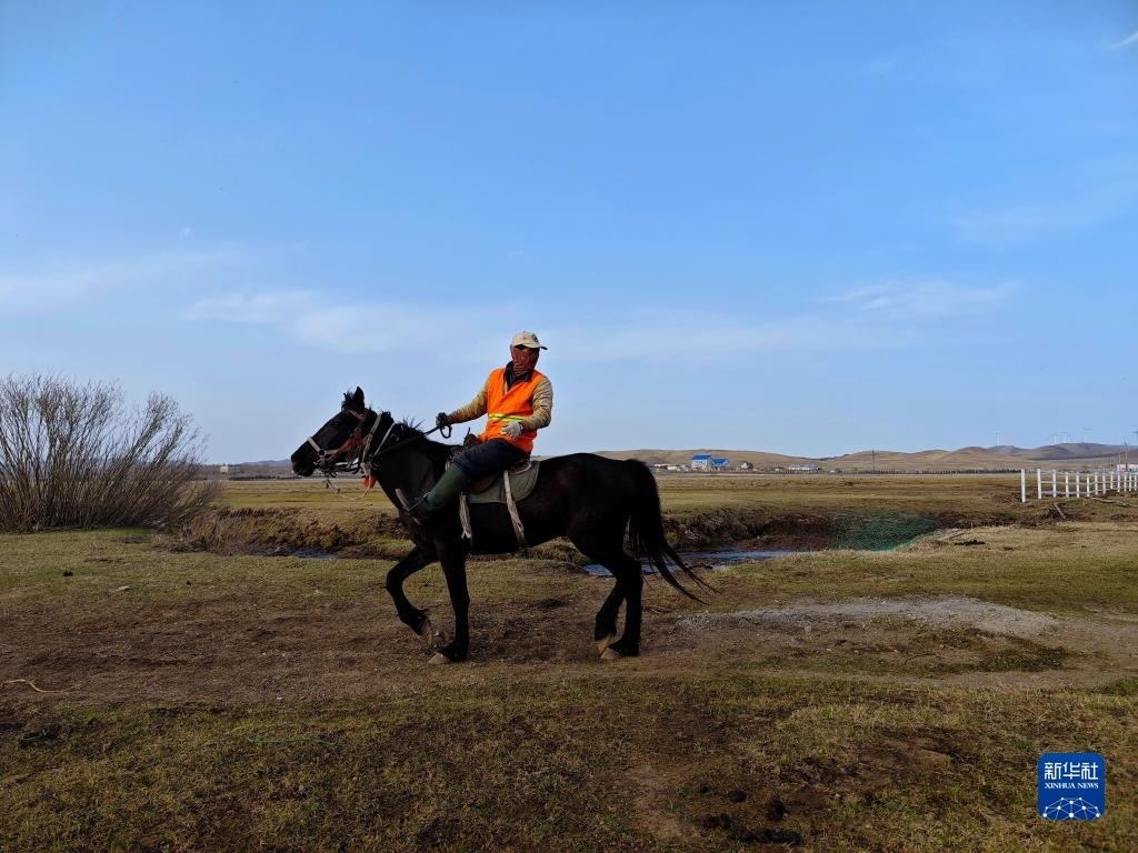 5月2日,河北省承德市豐寧滿族自治縣大灘鎮(zhèn)扎拉營村的護(hù)林員在海留圖國家濕地公園巡邏。