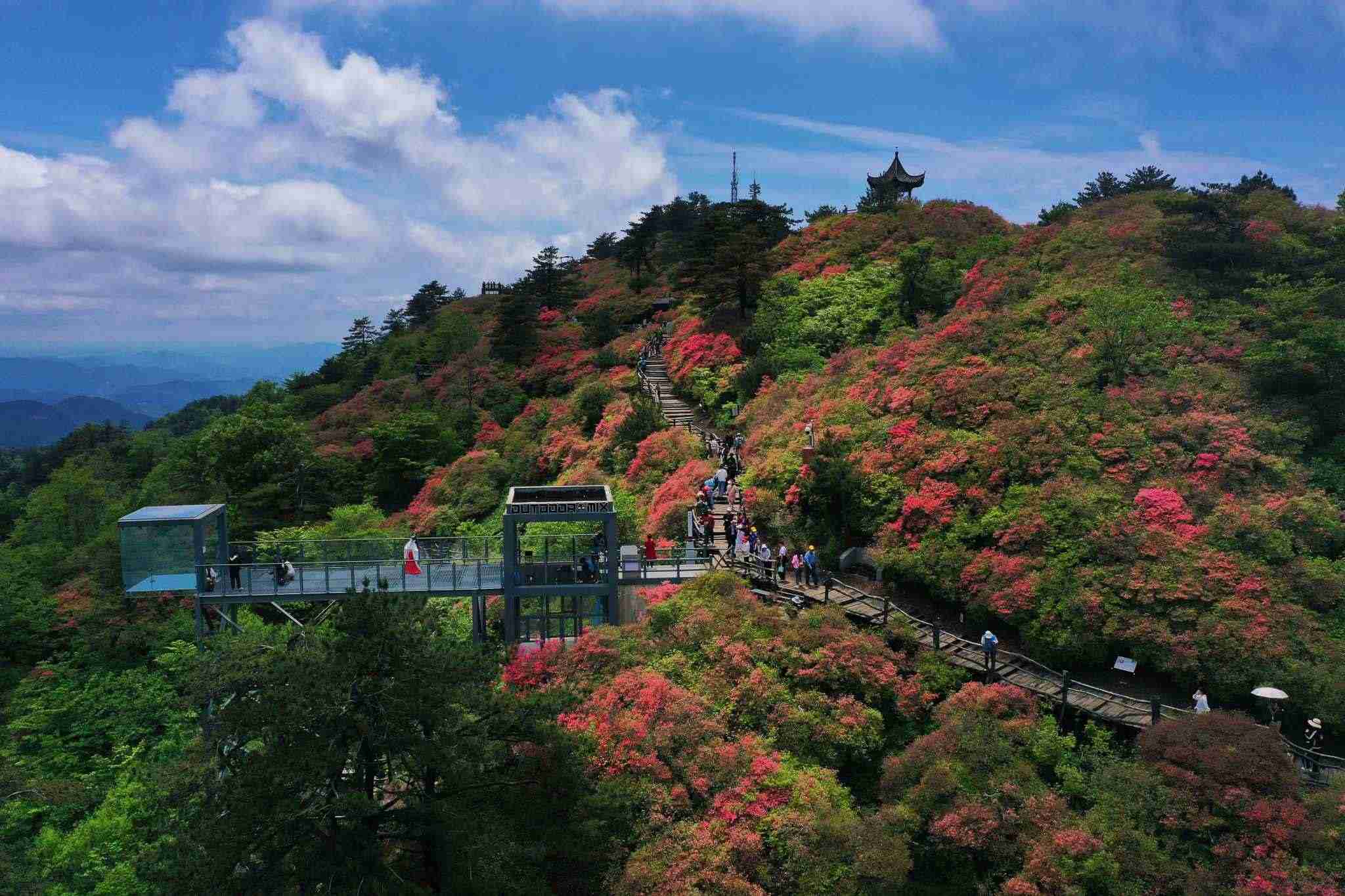 2023年5月5日,湖北黃岡,龜峰山杜鵑花綻放。視覺中國(guó)