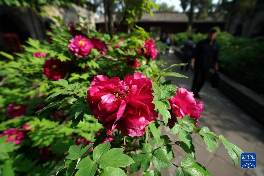 近日,山西太原雙塔寺景區(qū)的數(shù)千株牡丹花競相綻放,吸引游人前來觀花賞景。   新華社記者 詹彥 攝