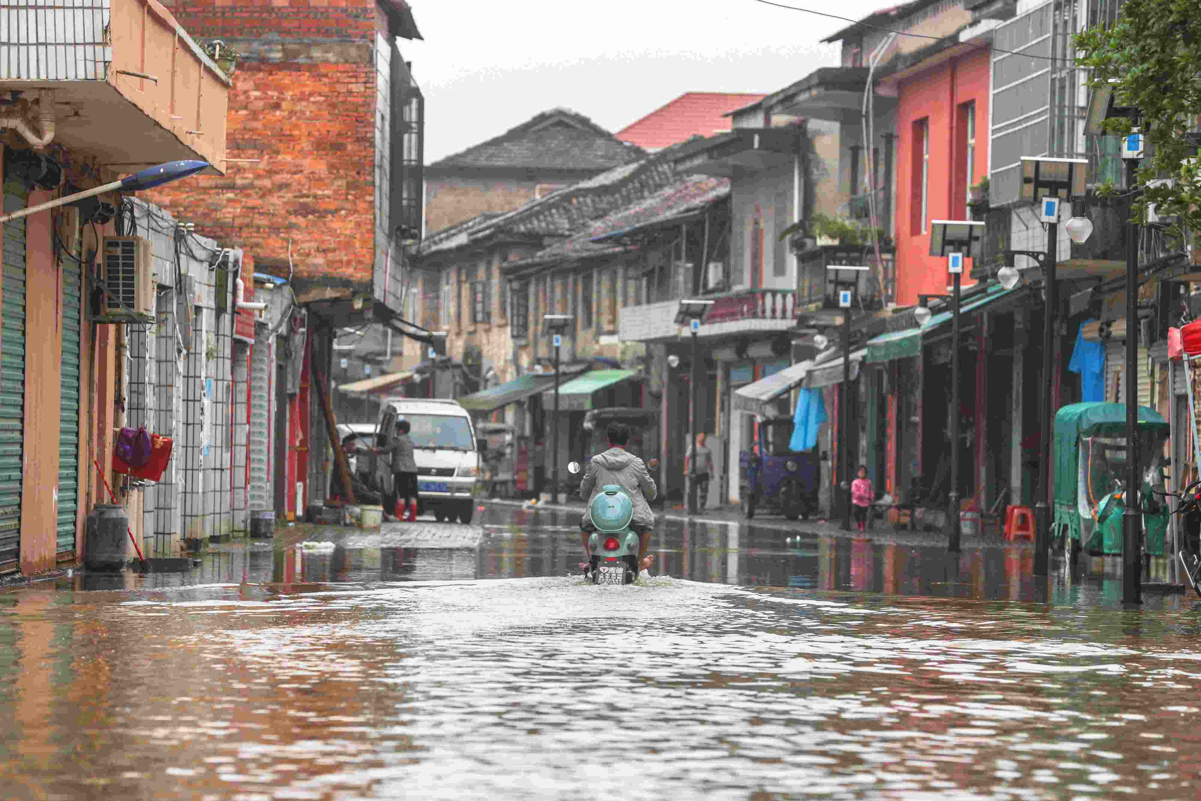 2023年5月6日,江西吉安,新干縣消防救援大隊(duì)隊(duì)員在麥斜鎮(zhèn)拿埠村轉(zhuǎn)移受困村民。 視覺中國
