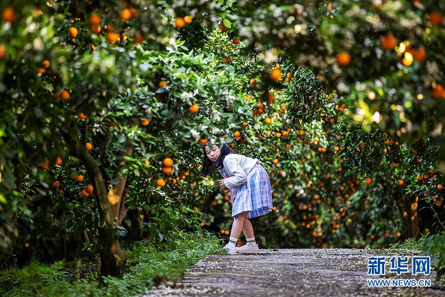 每到橘花燦爛時(shí),綠浪掩映金色橙果,微風(fēng)輕送撲鼻花香,吸引了不少游客前來(lái)觀賞,果子也實(shí)現(xiàn)就地銷(xiāo)售,柑橘成為農(nóng)民增收的“搖錢(qián)樹(shù)”。新華網(wǎng)發(fā)(余鴻 攝)