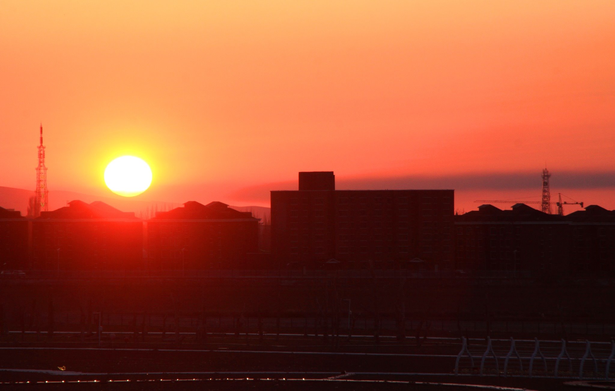 新疆塔城:天空現(xiàn)瑰麗晚霞