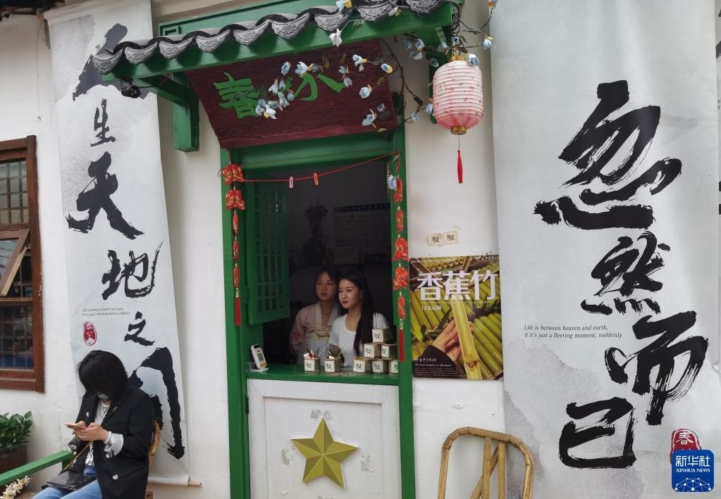 近年來(lái),山東濟(jì)寧立足老城實(shí)際,圍繞文旅融合、文化“兩創(chuàng)”,積極推動(dòng)傳統(tǒng)文化與新需求、新理念、新技術(shù)融合,探尋城市經(jīng)濟(jì)發(fā)展新路子。位于濟(jì)寧老城的環(huán)西北里文創(chuàng)街區(qū)近期對(duì)外開(kāi)放,街區(qū)由老舊院落設(shè)計(jì)改造,注入優(yōu)秀傳統(tǒng)與時(shí)尚文化元素,集餐飲、娛樂(lè)、互動(dòng)、文創(chuàng)于一體,既盤(pán)活了老舊城區(qū)資源,又促進(jìn)了創(chuàng)業(yè)就業(yè),成為人氣文創(chuàng)旅游“打卡地”。新華社記者 張善臣 攝