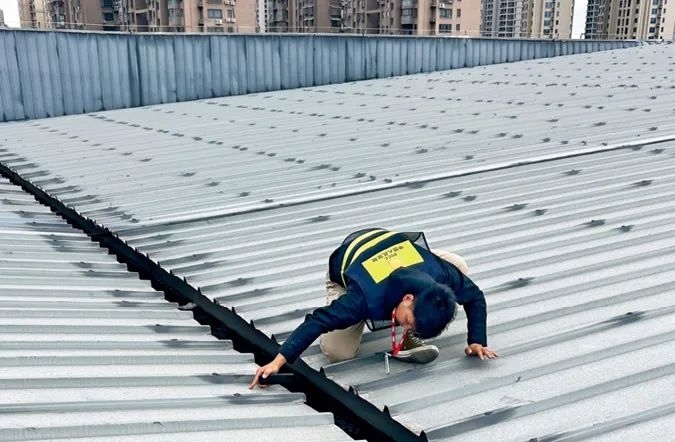 ▲“梅花”臺(tái)風(fēng)將至,2022年9月14日16時(shí),人保財(cái)險(xiǎn)浙江溫州永嘉支公司青年員工趕在臺(tái)風(fēng)前走訪重點(diǎn)企業(yè)開展防災(zāi)檢查。他不懼危險(xiǎn),爬上客戶廠房棚頂查看密封情況,只為確保廠房安全。