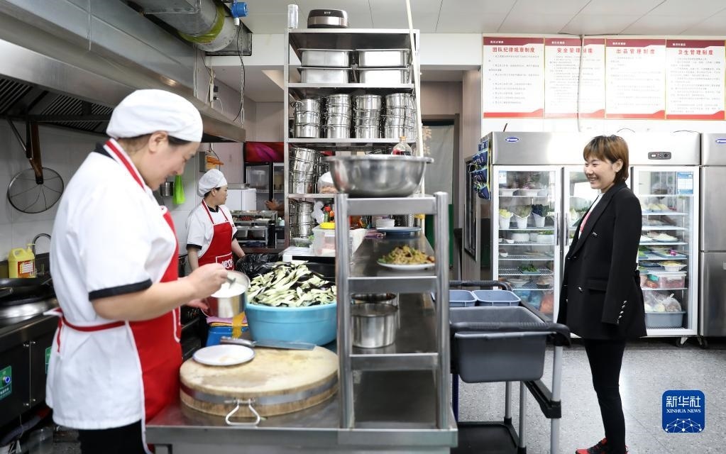 5月11日,韓丹來到自己開的火鍋店后廚,和員工聊聊當(dāng)天的備菜情況。   新華社記者 姚劍鋒 攝