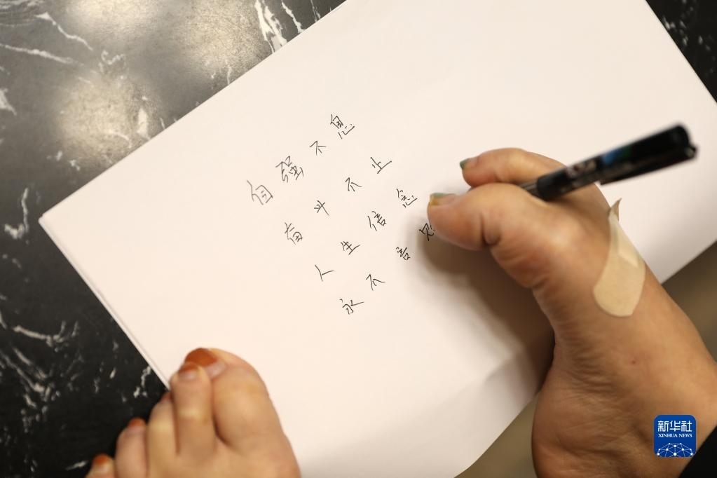 成為一名母親,對(duì)于韓丹來說,是一個(gè)異常艱難的過程。沒辦法用手抱住喂奶,韓丹就坐在床上,用腳把孩子擁在懷里。女兒的頭發(fā)漸漸長長,韓丹就學(xué)著用腳幫她扎馬尾辮,盡自己最大的努力照顧孩子。但在韓丹心里,依然有一個(gè)遺憾:不能擁抱自己的孩子。還好兩個(gè)孩子很懂事。遇見同學(xué)的疑問,他們總會(huì)自信地說:“我的媽媽很厲害,她的腳什么都能干!”   新華社記者 姚劍鋒 攝