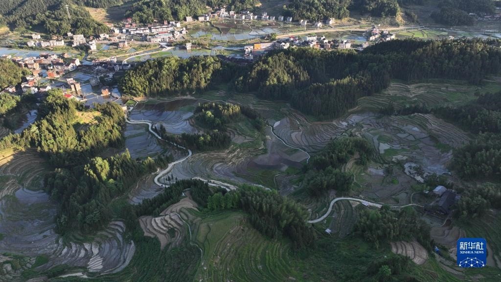 近日,湖南省婁底市新化縣紫鵲界梯田蓄水備耕,水影天光如詩(shī)如畫(huà)。新華社記者 趙眾志 攝
