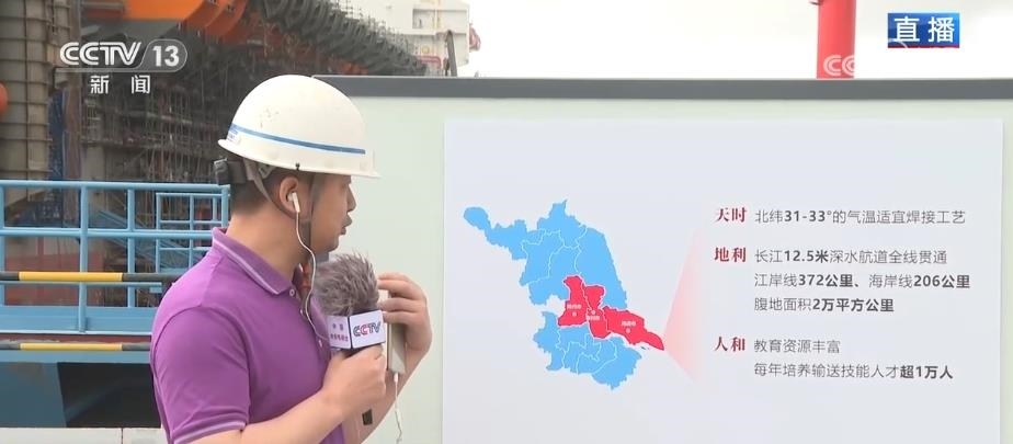 總臺記者 唐高林:我現(xiàn)在是在位于長江入海口的一家船舶制造企業(yè),高質(zhì)量發(fā)展調(diào)研行的團隊,正在這里調(diào)研。這幾天調(diào)研團一路沿江而下,從南京到揚州再到無錫等多個城市,看到了江蘇作為制造業(yè)大省,持續(xù)推進“產(chǎn)業(yè)強鏈補鏈”計劃,實體經(jīng)濟呈現(xiàn)出良好的發(fā)展態(tài)勢。