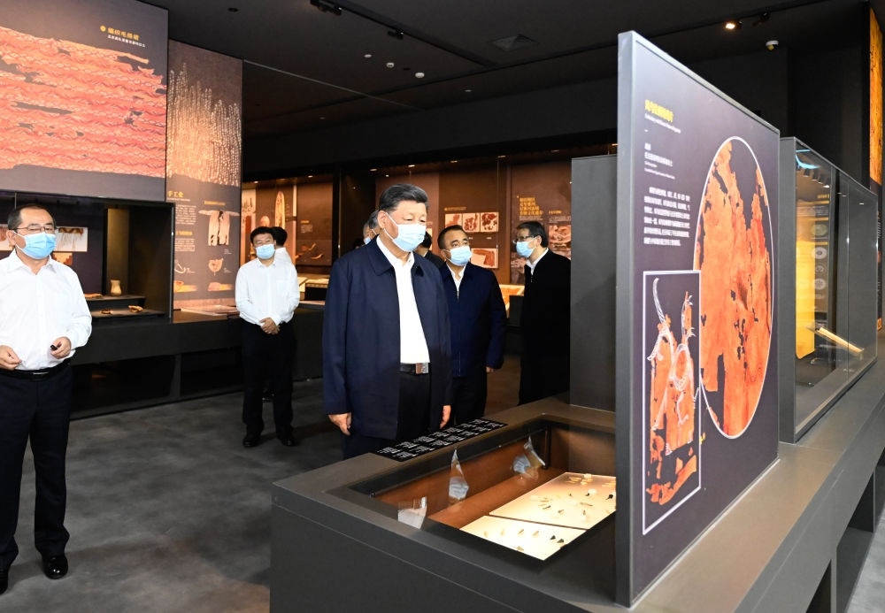 2022年7月13日,習(xí)近平在烏魯木齊市新疆維吾爾自治區(qū)博物館參觀《新疆歷史文物展》。