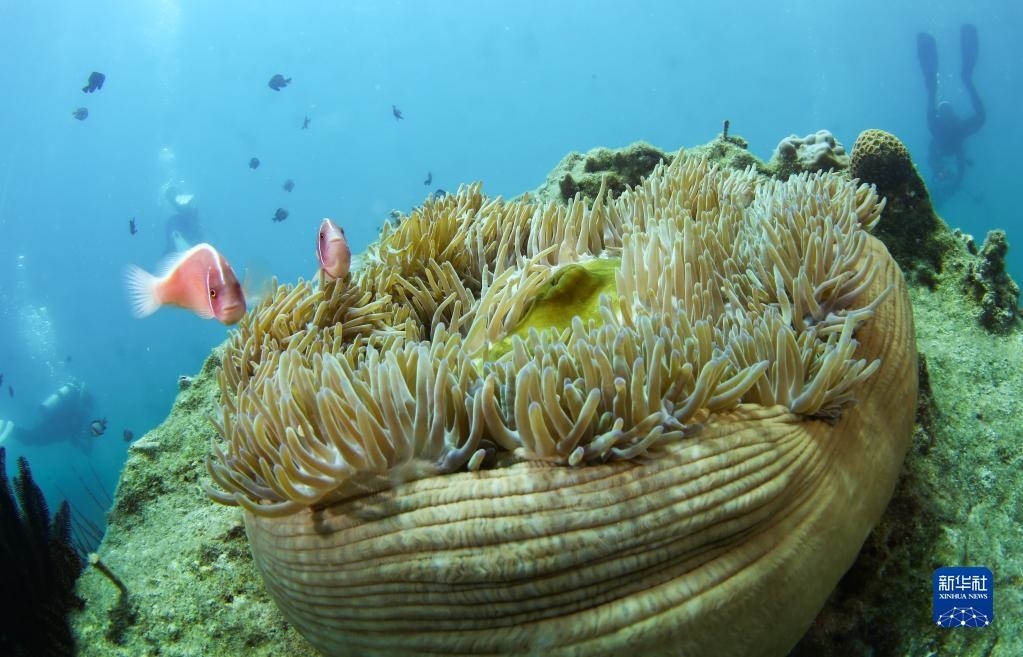 這是在蜈支洲島海域海洋牧場拍攝的小丑魚和???月18日攝)。