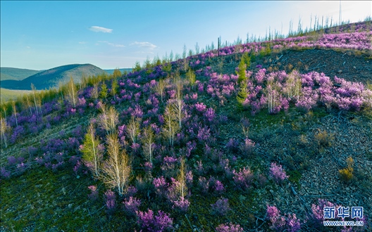 5月22日,內(nèi)蒙古大興安嶺北部“杜鵑花谷”杜鵑花綻放。新華網(wǎng)發(fā)(李明 攝)
