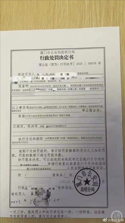 ·六旬男醫(yī)生猥褻女體檢者被行拘,受害方:已提請吊銷其行醫(yī)資格。