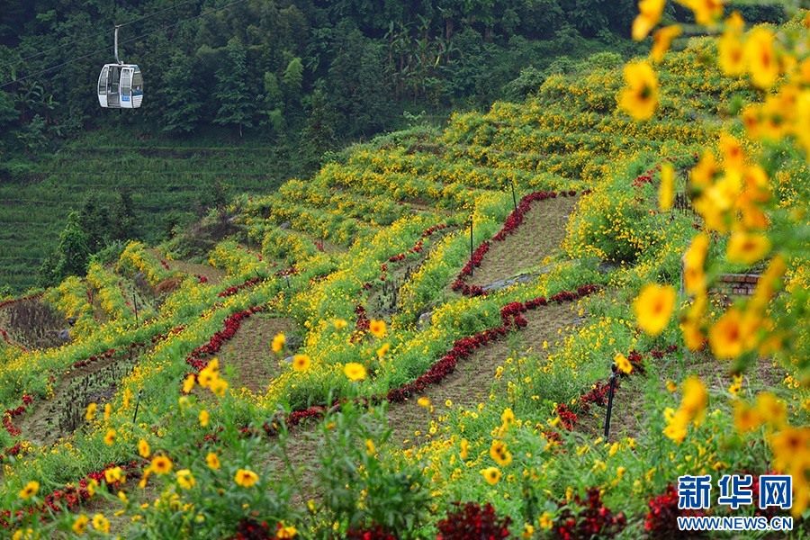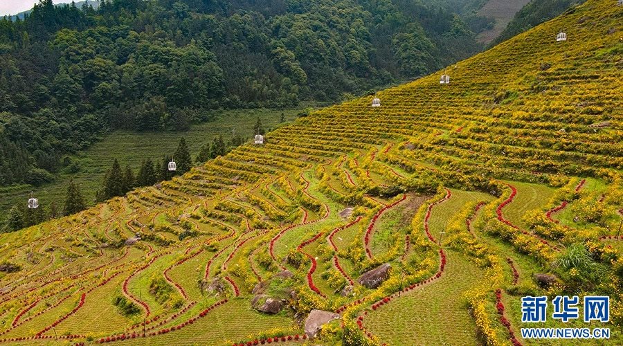 5月,在廣西桂林市龍勝縣泗水鄉(xiāng),近千畝連綿一片的布尼梯田已花開成海,絢麗多彩的花海梯田吸引游客前來打卡拍照。 (伍春媛)