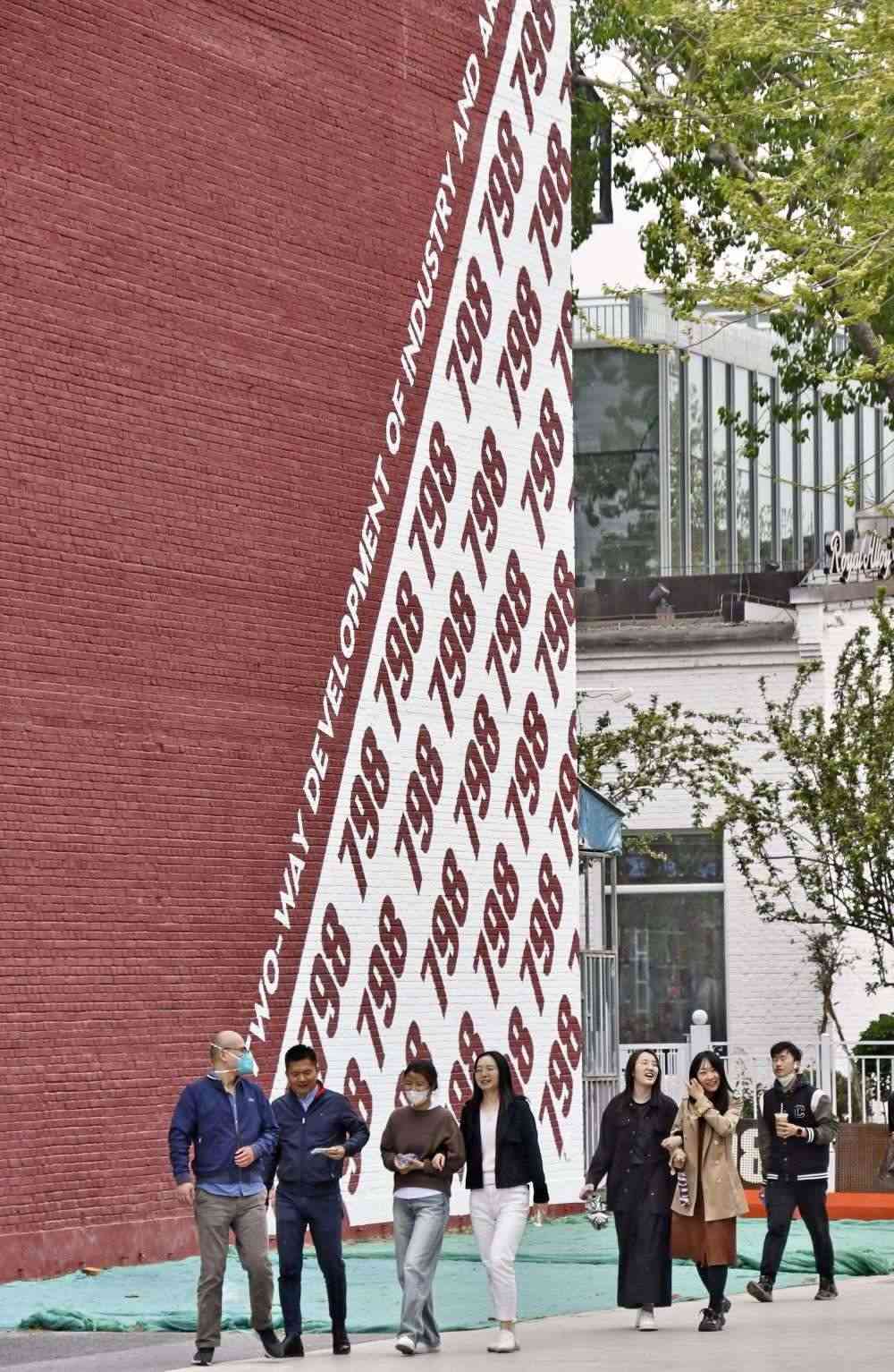 游人在老舊廠區(qū)改造的北京朗園文創(chuàng)園區(qū)參觀(2023年4月12日攝)。新華社記者 李欣 攝