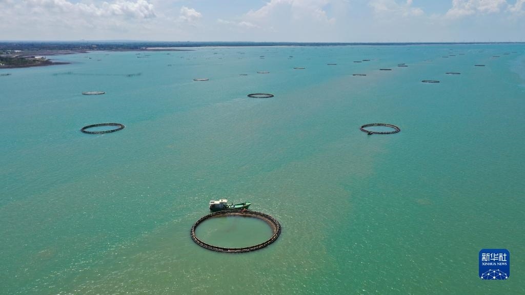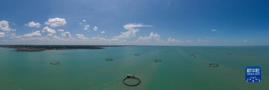 湛江徐聞西連鎮(zhèn)的“海上牧場(chǎng)”(5月27日攝,無人機(jī)全景照片)。