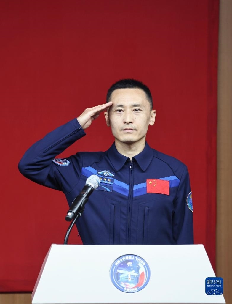 5月29日,神舟十六號(hào)航天員乘組與中外媒體記者集體見面會(huì)在酒泉衛(wèi)星發(fā)射中心問天閣舉行。這是航天飛行工程師朱楊柱在見面會(huì)上。