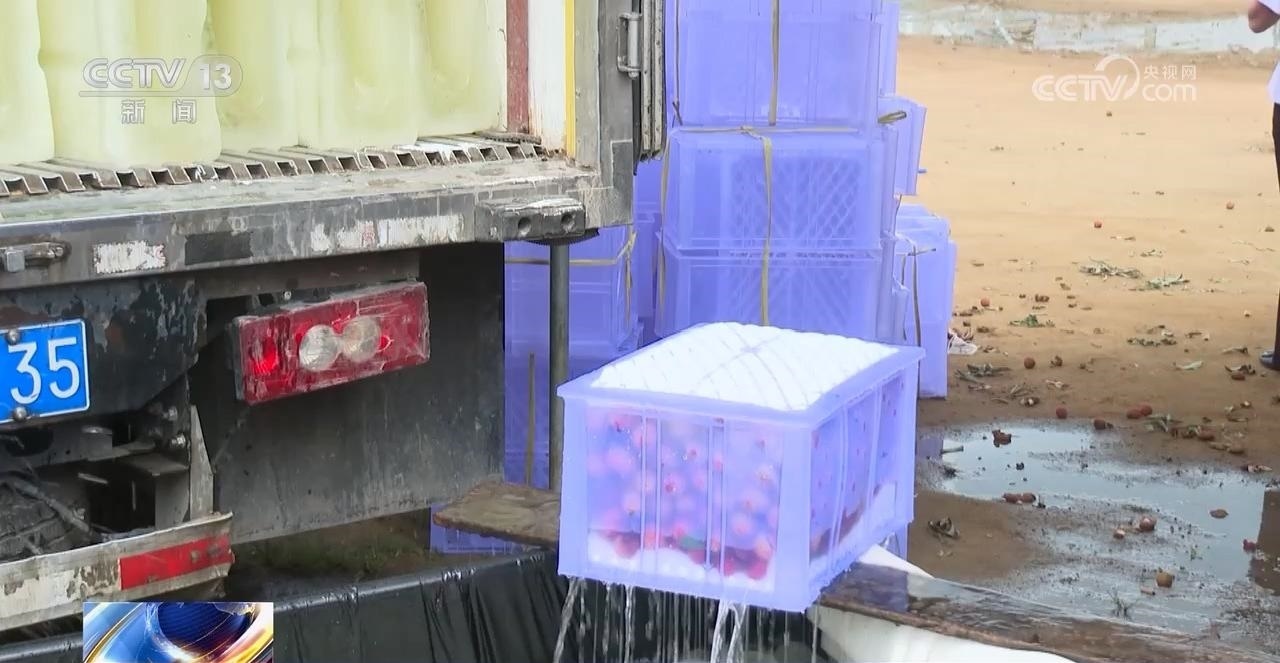這邊采購商前腳剛走,梁康連就來到荔枝分揀打包中心。現(xiàn)在這里剛采摘下來的荔枝,分選打包后,要放到冰水里浸泡一個(gè)小時(shí)以上,再裝上冷鏈車物流運(yùn)輸保證荔枝的新鮮度。