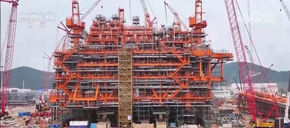 中國海油天津分公司工程建設中心項目負責人 陳濤:中心平臺設計油氣年處理能力超500萬噸,平臺在陸地完成拖拉裝船、固定、檢驗后,將于7月運往海上開展安裝、連接、調(diào)試工作,預計2023年底投入試生產(chǎn)。